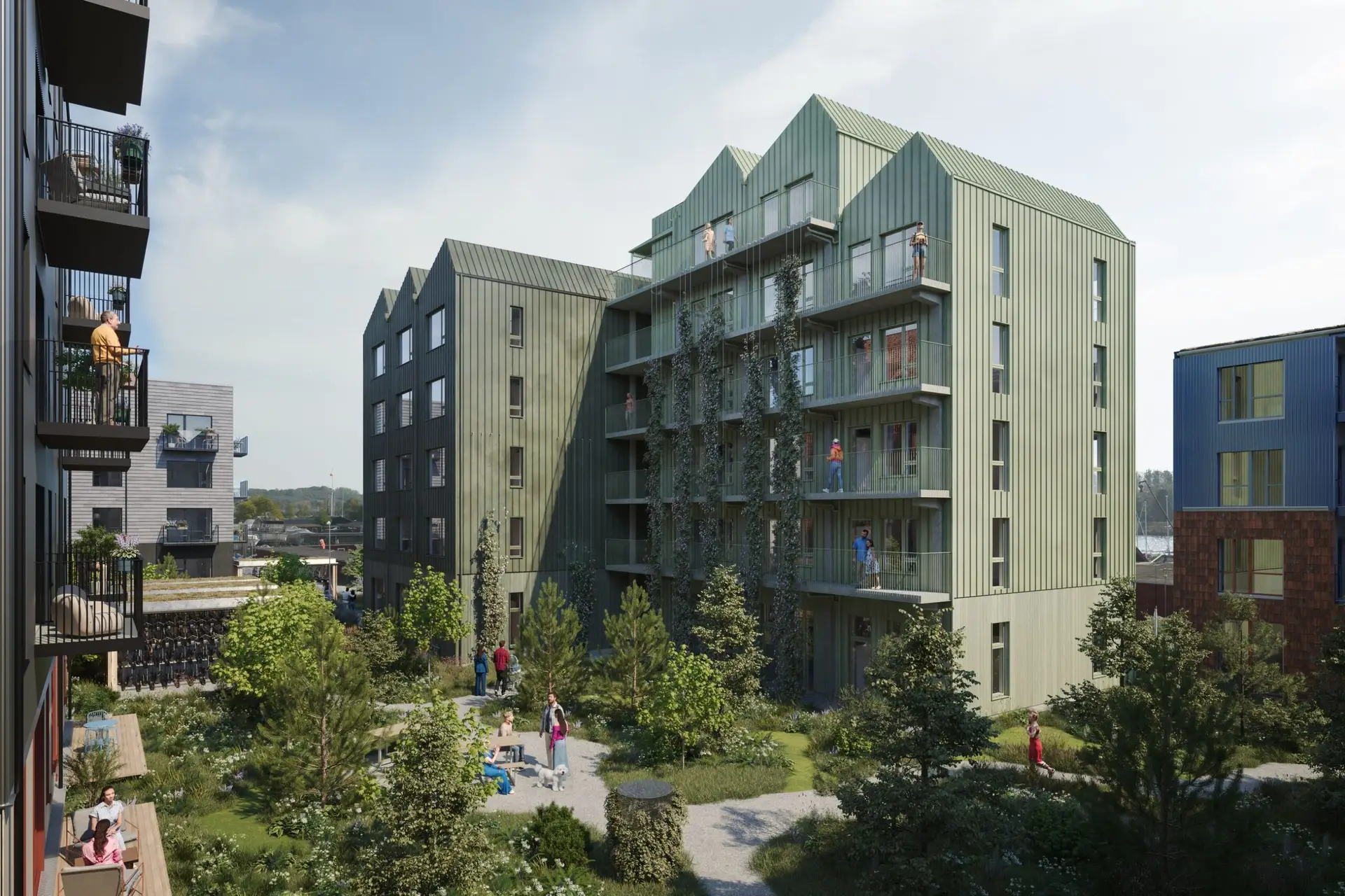 - Stor altan eller terrasse med udsigt til vand, grønne områder eller gårdmiljø
