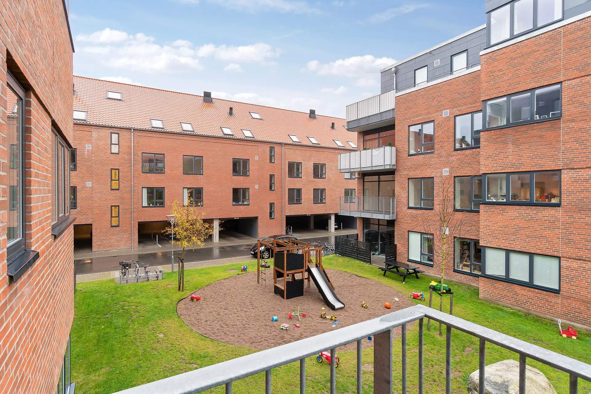Hver bolig har sit eget private udendørsområde i form af solrige altaner eller terrasser i stueetagen og på øverste etage finder du penthouselejlighederne, hvor du kan nyde din egen tagterrasse.