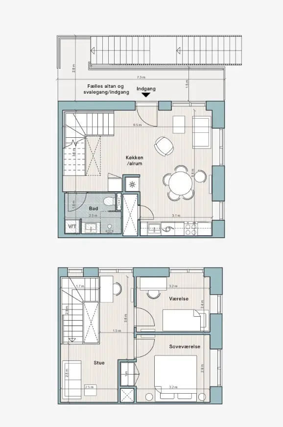 Udvalgte visualiseringer: De viste visualiseringer er fra udvalgte lejeboliger. De afspejler derfor nødvendigvis ikke denne specifikke bolig. Visualiseringerne vises alene for at inspirere og give indblik i boligernes udformning.